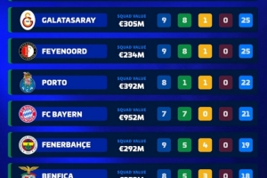 体育资讯10月25日讯 德转盘点了欧洲前十联赛目前仍保持不败的球队,共计8队,其中五大联赛仅剩拜仁、亚特兰大。具体如下: